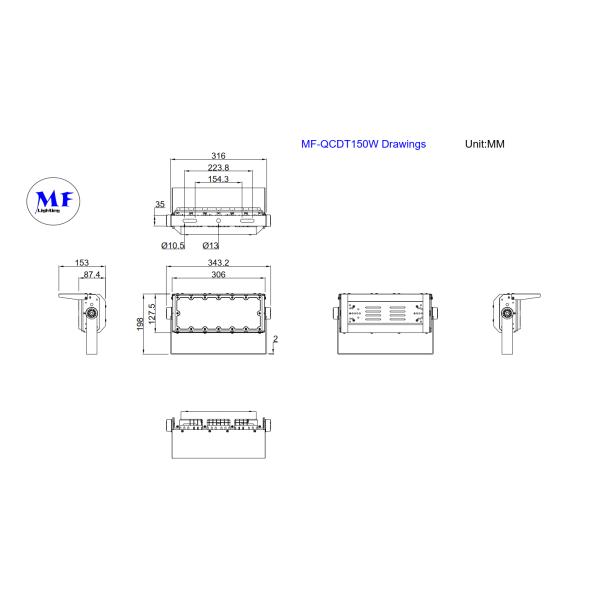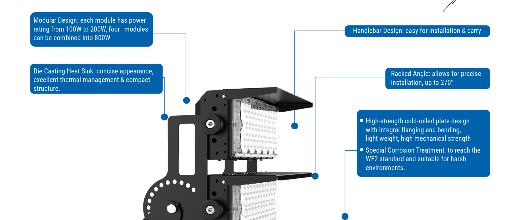150W 160lm/W Stadium LED Sports Flood Light 10° /20° /40° /60° /90° Aluminum IP66 Waterproof Dustproof 6 Years Warranty